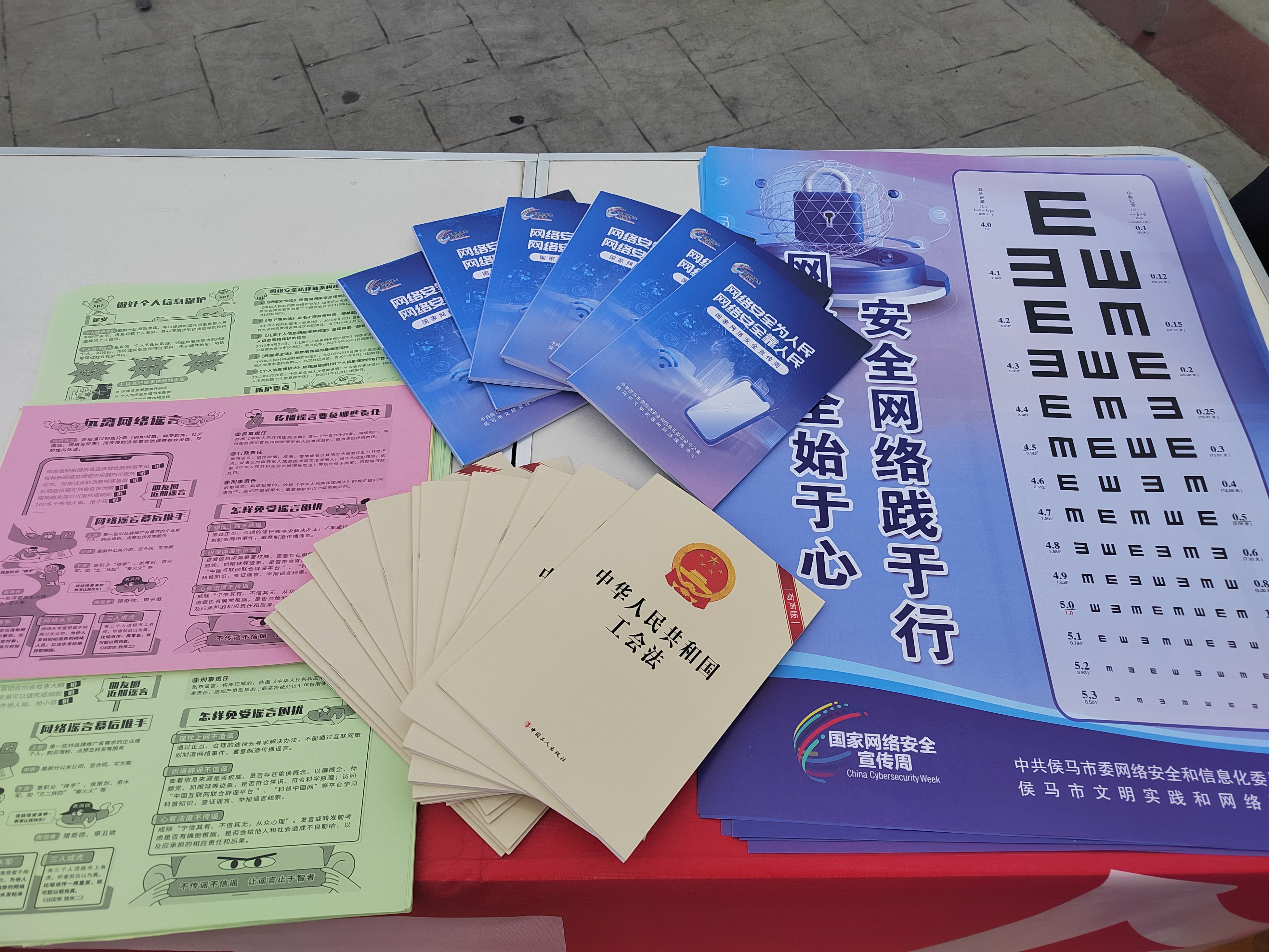 活动现场,市总工会通过摆放宣传版面、发放宣传资料、设置宣传咨询台的方式普及网络安全知识,教育引导广大职工群众保护好个人信息、提高信息安全意识。